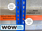 Maximise your storage with the WOW250 1800mm Blue & Orange shelving unit – a strong and reliable solution for garages, workshops, and commercial spaces. Whether you're organising tools, stock, or spare parts, this heavy duty system is built to handle the job.