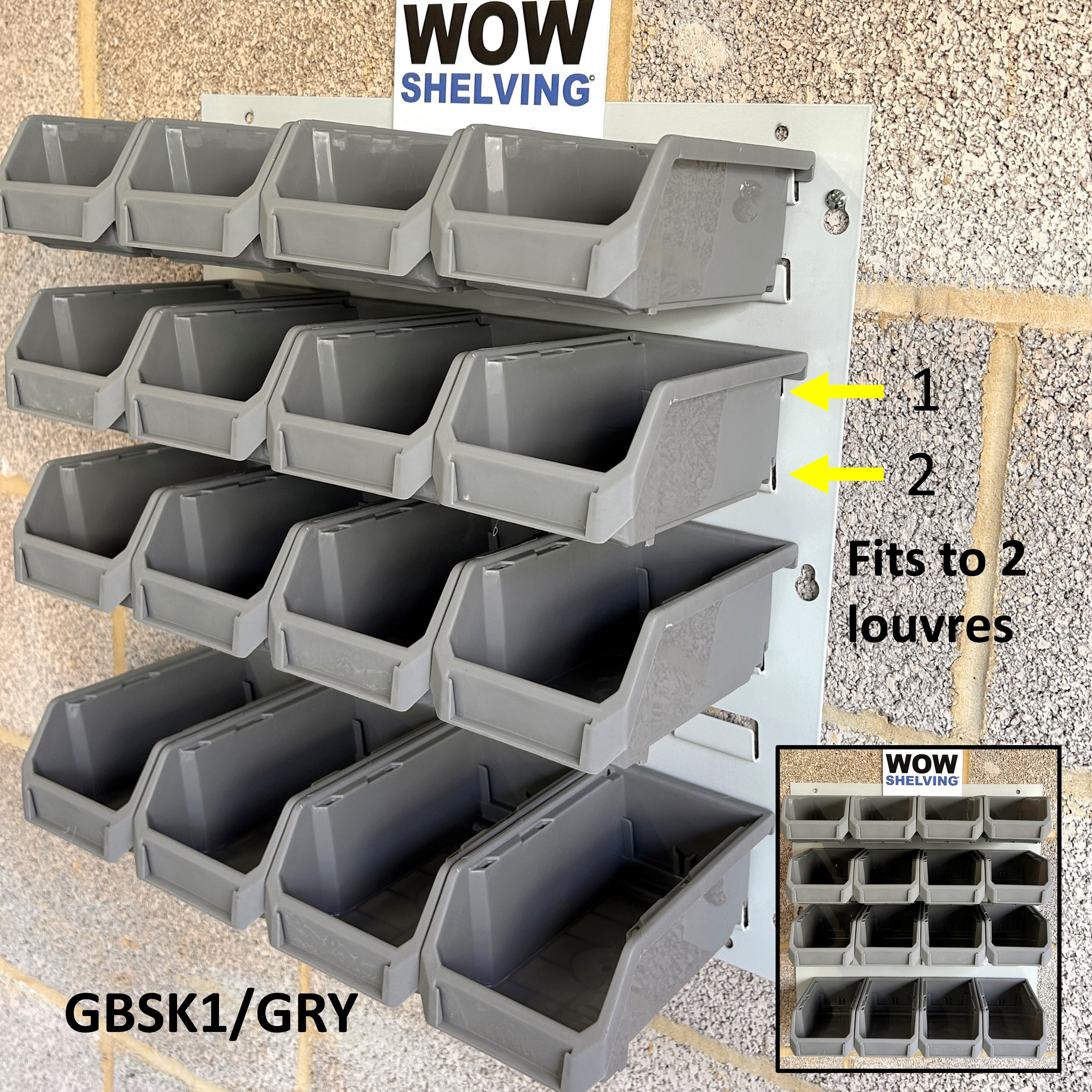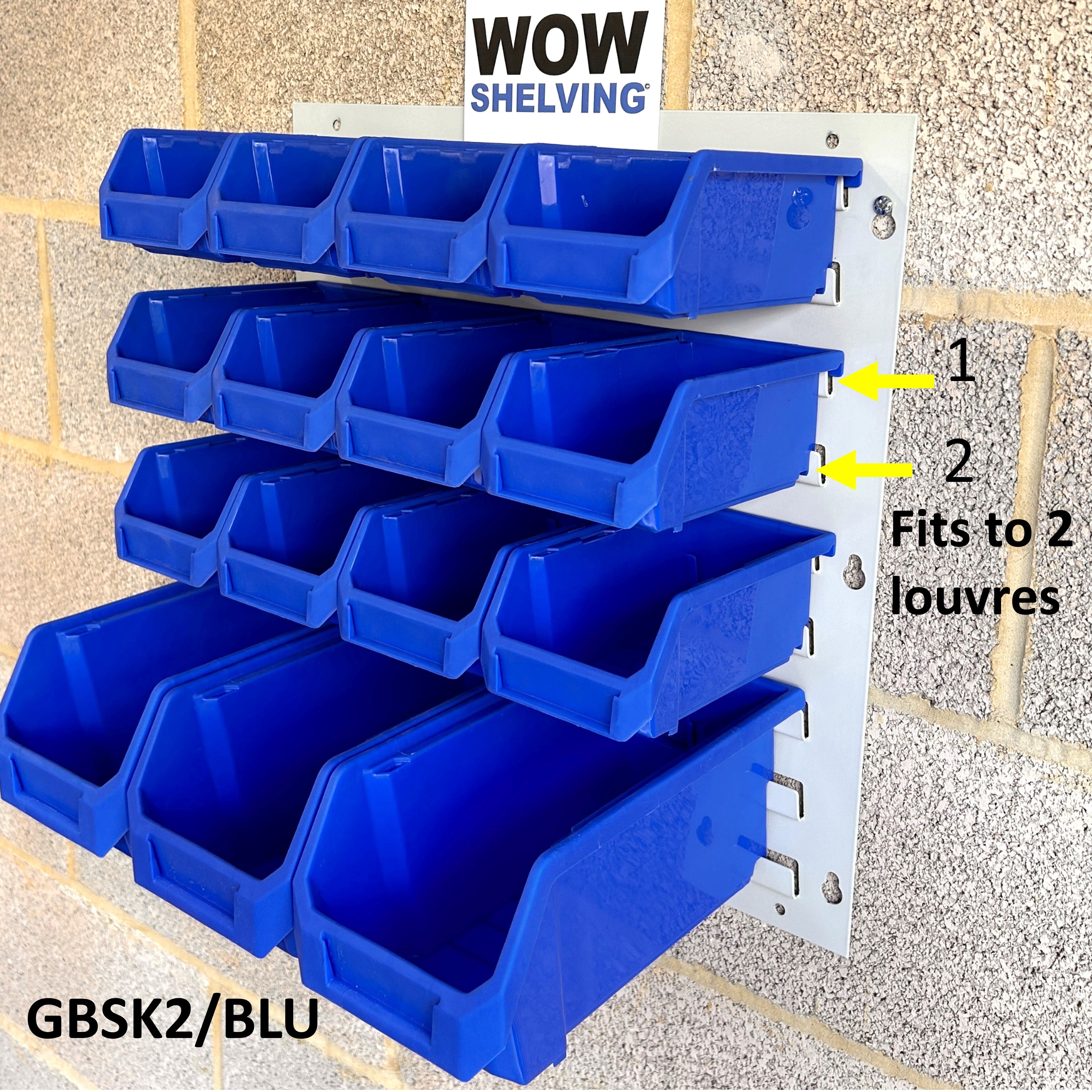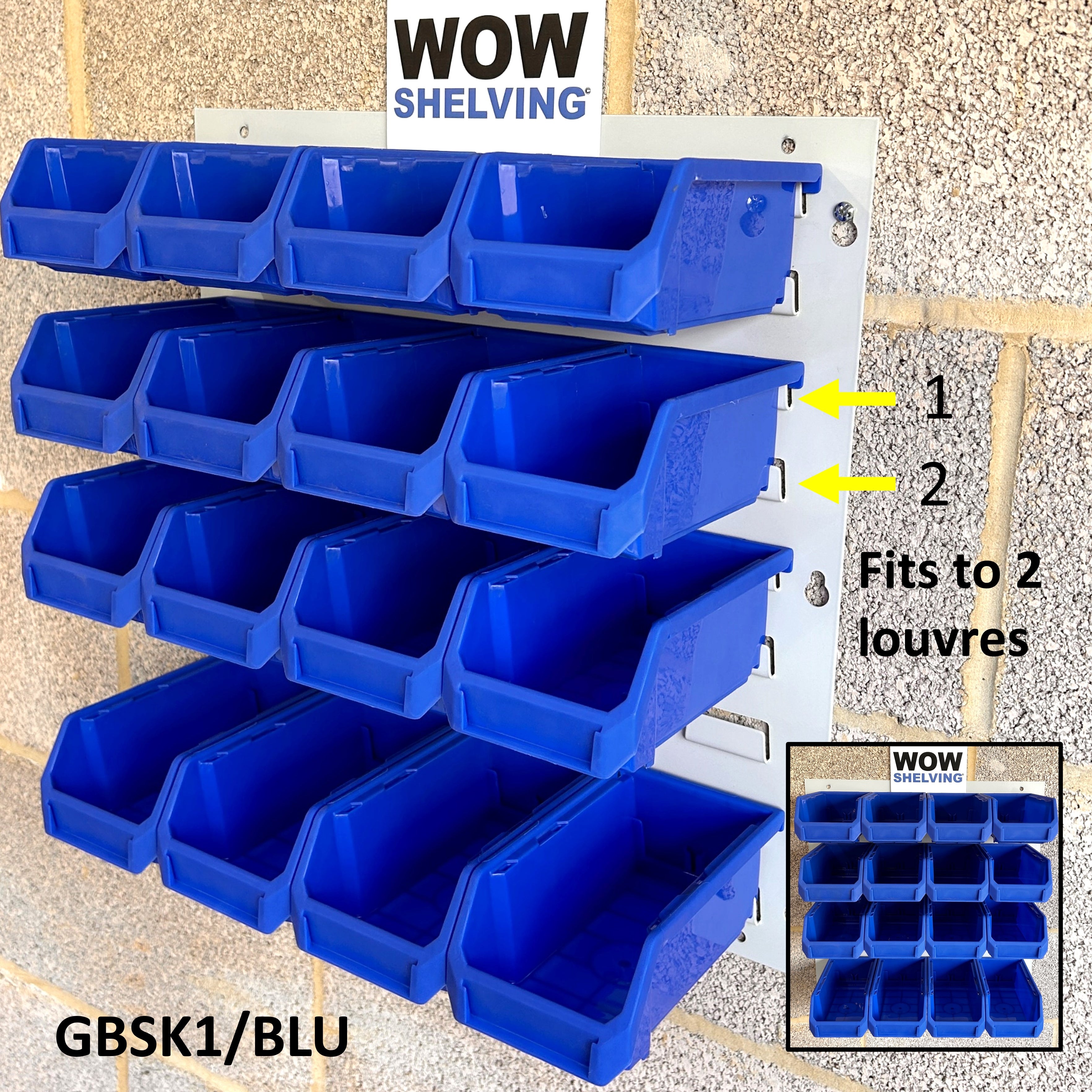 Heavy Duty Wall Mounted Louvre Panels 1.2mm thick steel, upto 700grams heavier than similar looking ones & premium virgin polypropylene parts bins.