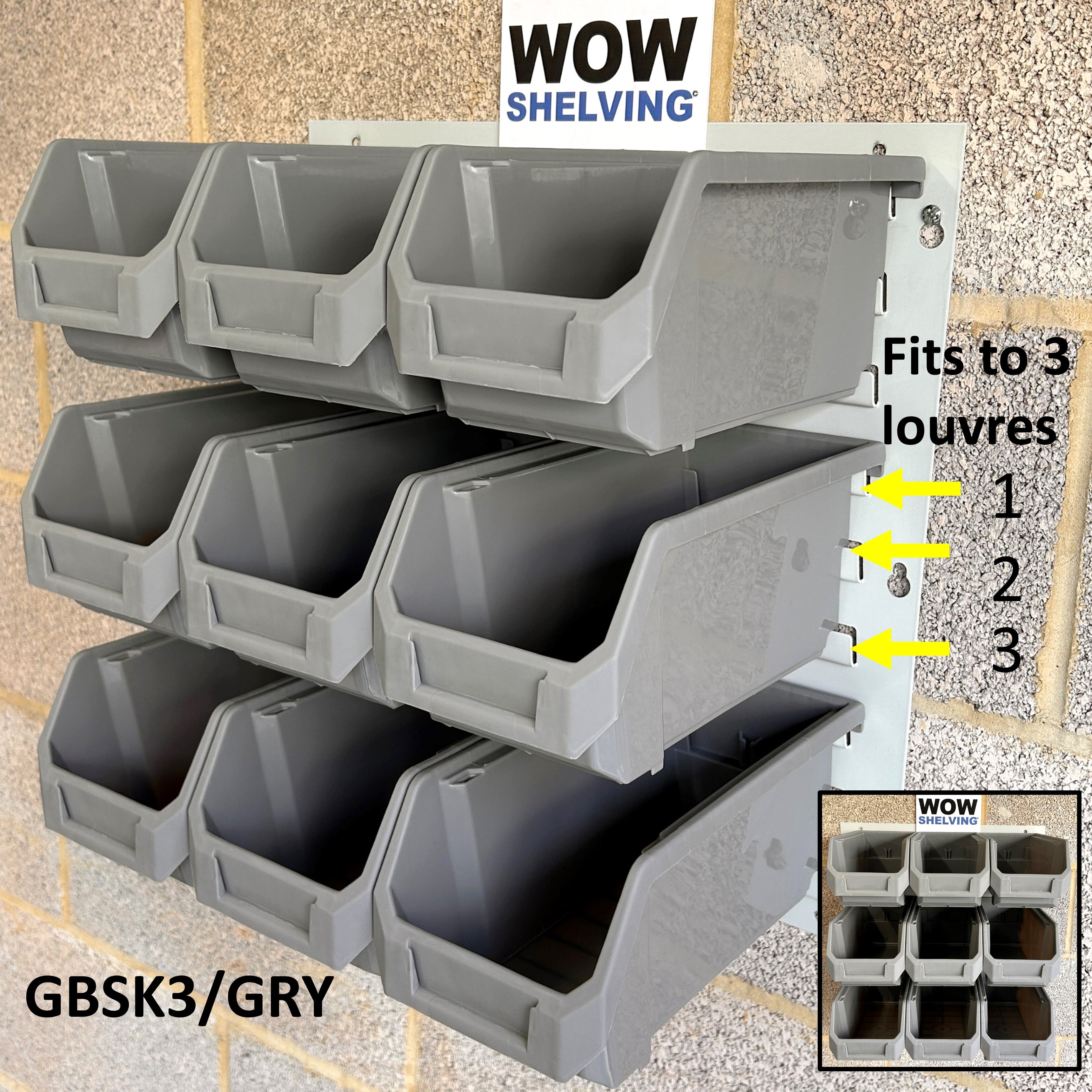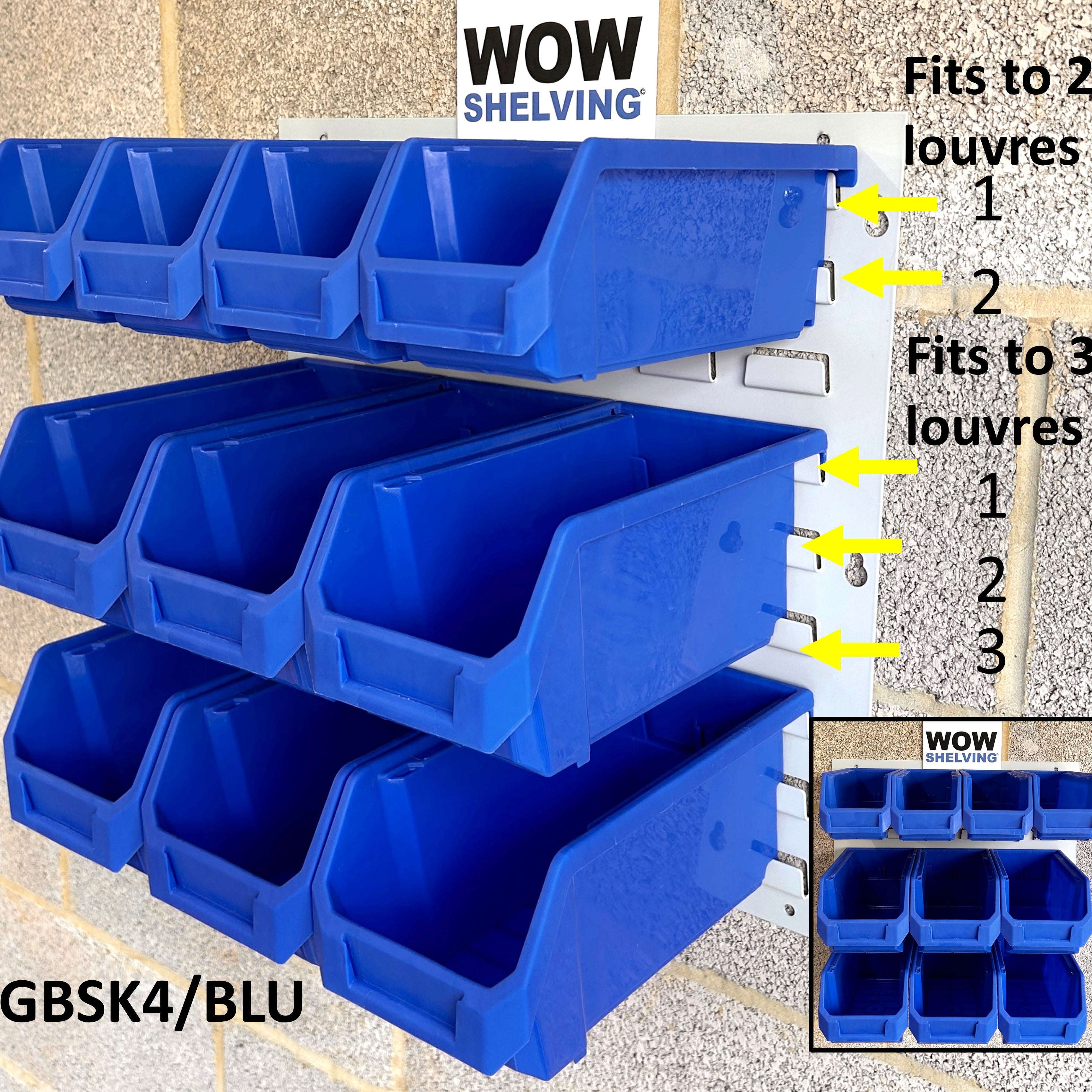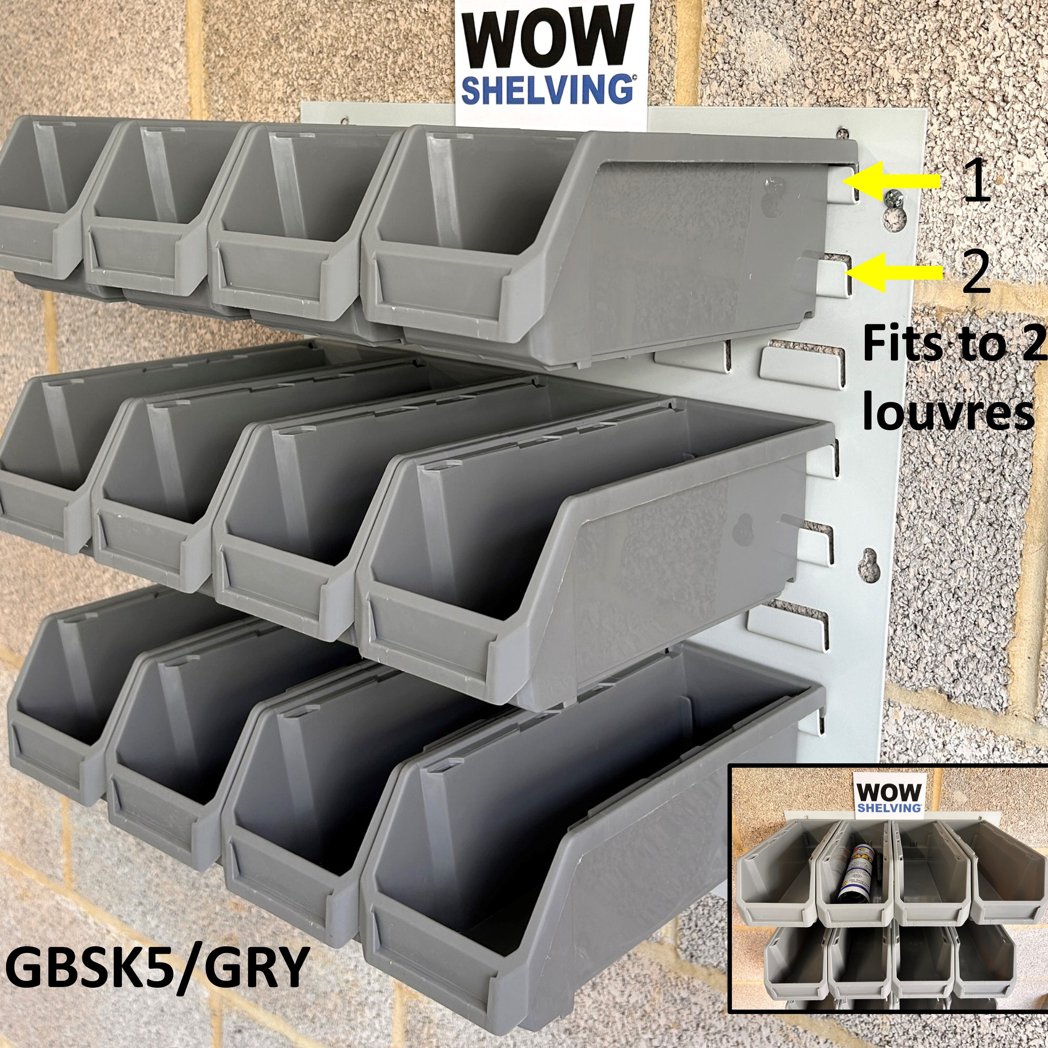 Heavy Duty Wall Mounted Louvre Panels 1.2mm thick steel, upto 700grams heavier than similar looking ones & premium virgin polypropylene parts bins.