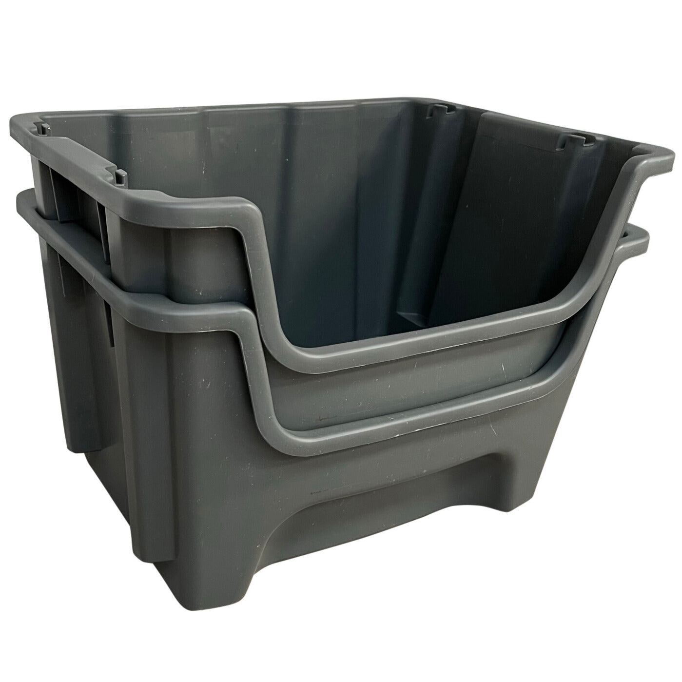 - Large polypropylene storage container that can be stacked or nested.
